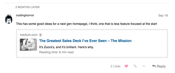 だからといって、私たちがイノベーションをやめたわけではありません。最新のv1.7リリースをご覧いただければおわかりいただけるでしょう。しかし、Discourseがモダンでおしゃれ、あえて言えば革新的であり、時代に即したものであることを、もはや人々に説得する必要はありません。それは自明のことです。今私たちがすべきことは、以下を説明することです……
