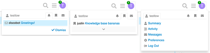 ユーザーメニューがタブ形式になりました。ユーザーメニューから通知、ブックマーク、メッセージに直接アクセスできるようになりました。