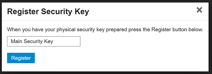 アカウントに対して、好きなだけセキュリティキーを登録し(かわいいペットネームを付けることも)できます。また、enforce second factor サイト設定を使って、スタッフのみまたは全ユーザーに対して二要素認証を必須にすることもできます。