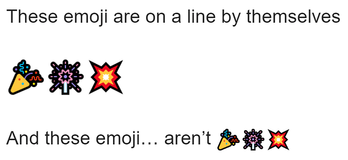 Discourse の一般的な原則のひとつとして、リンクを単独の行に貼り付けるとワンボックス化という形でマジックが起きることがあります。私たちは一般的なチャットアプリケーションを参考に、その概念を絵文字の素晴らしい世界にも拡張することにしました!