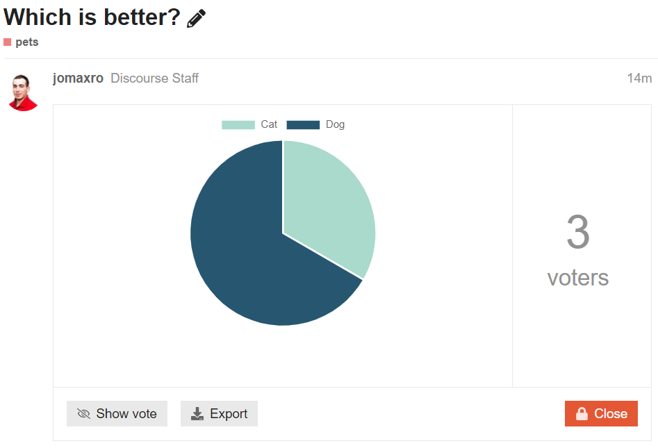 投票を円グラフとして表示できるようになり、特定のグループによる投票に制限することもできます。