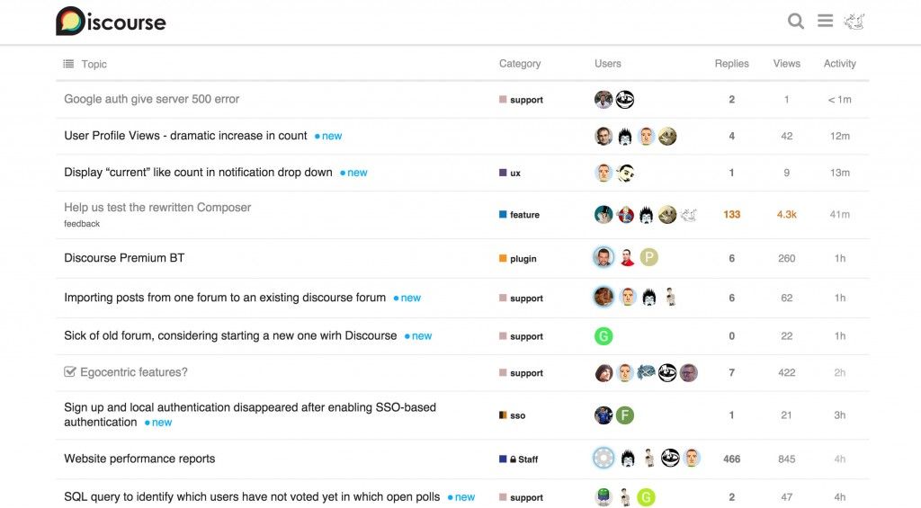Discourseは年々よりスリムになり、より手強く文明的なディスカッションを促進するものになっています。また、角が少し丸くなりました。