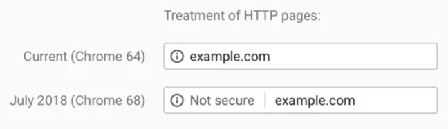 デフォルトでのHTTPS展開は、まさに適切なタイミングで実現しています。ChromeやFirefoxなどの主要ブラウザは、HTTPのみのサイトを以下のように「安全でない」と表示する変更を展開中です。