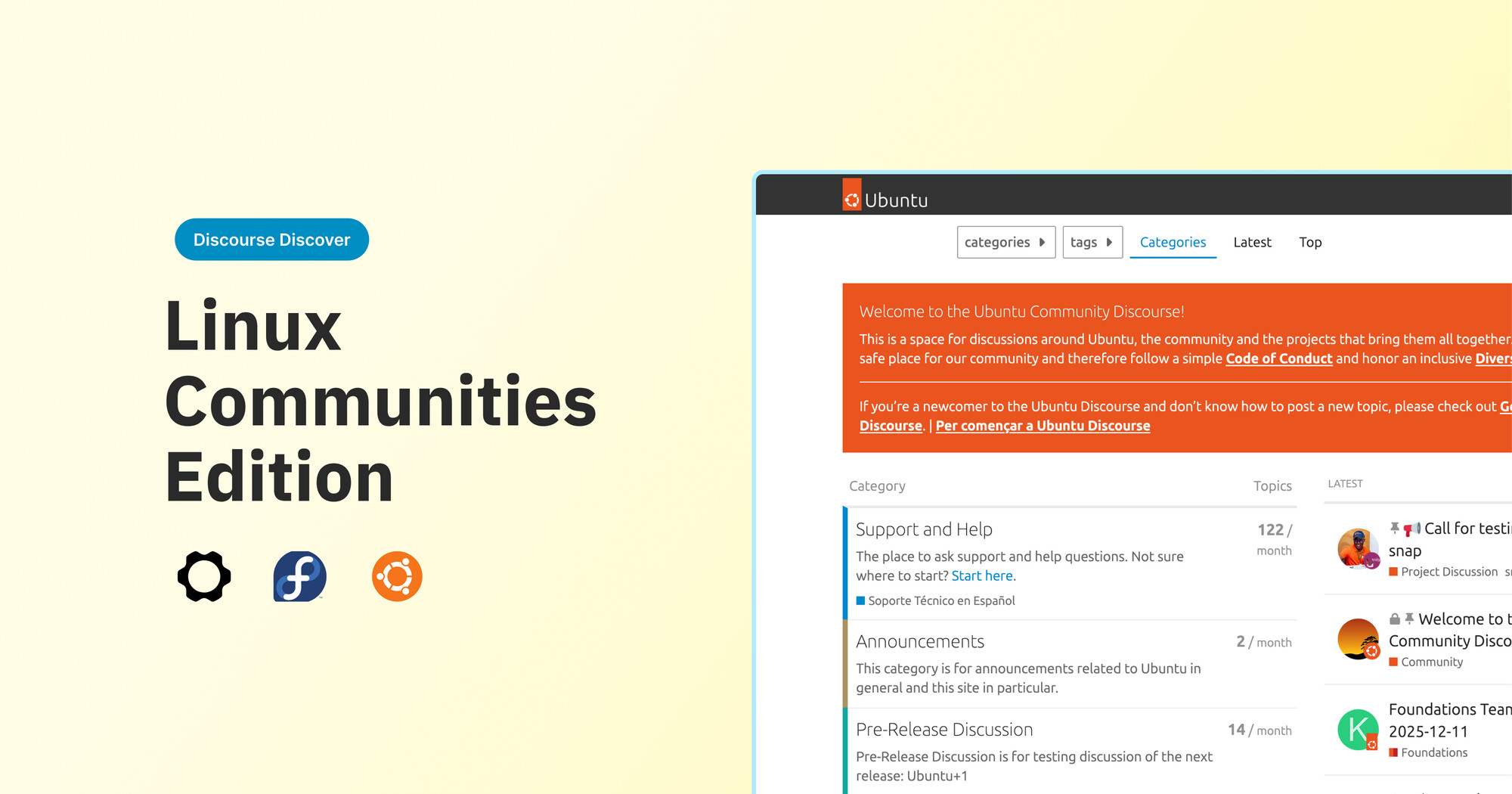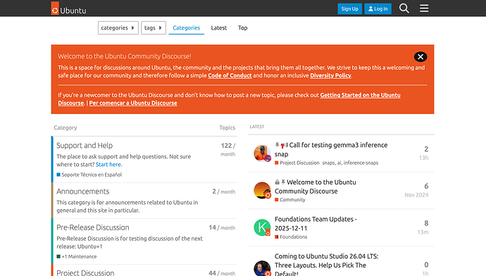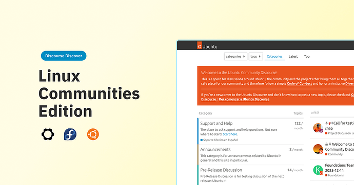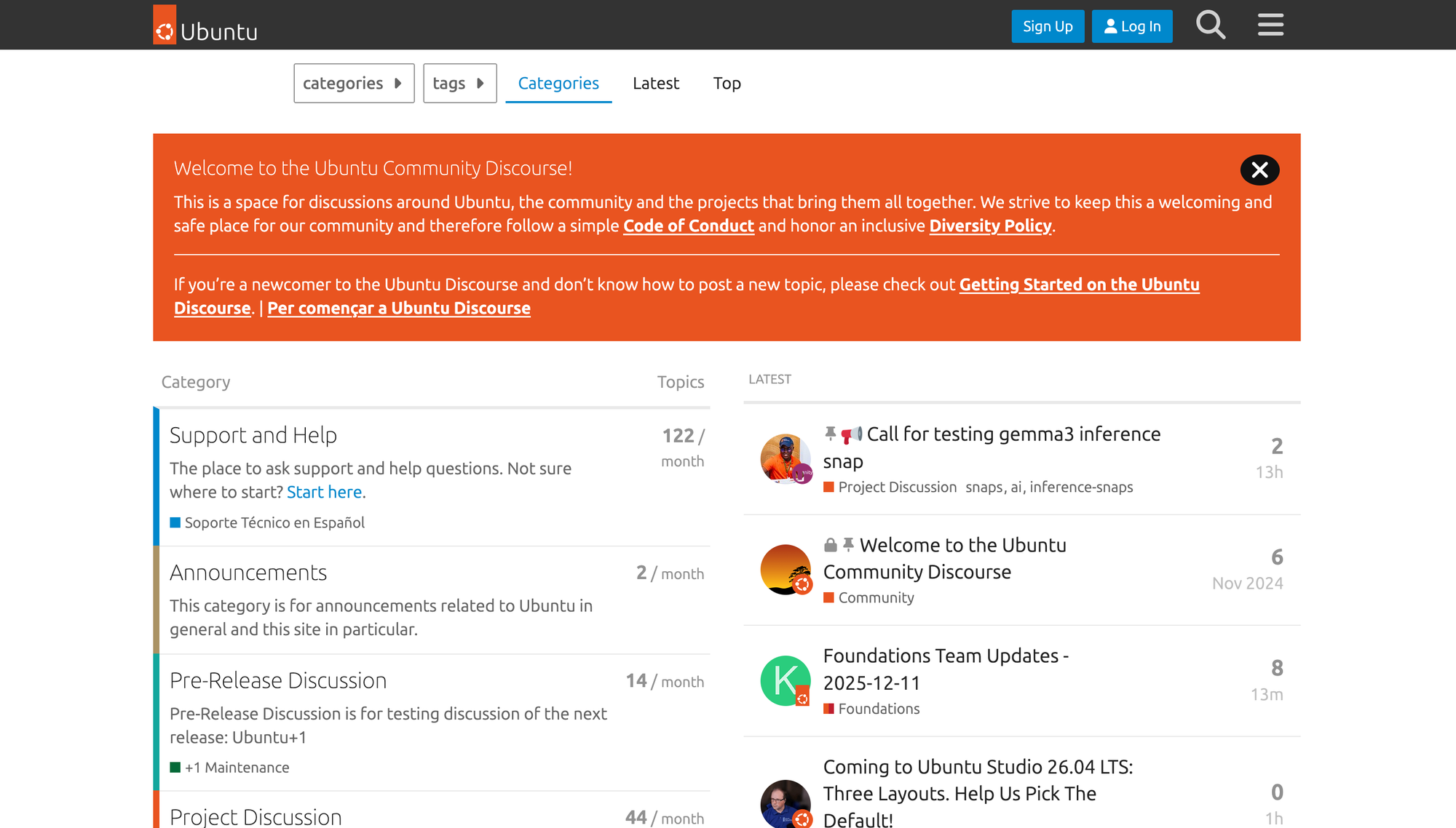 UbuntuのCommunity Hubは、すべての公式Ubuntuフレーバーのユーザーを一堂に集め、テクニカルサポートからイベント調整まであらゆることに対応しています。2,000件を超えるトピックが、インストール問題、ソフトウェアのトラブルシューティング、ハードウェアの互換性をカバーしています。