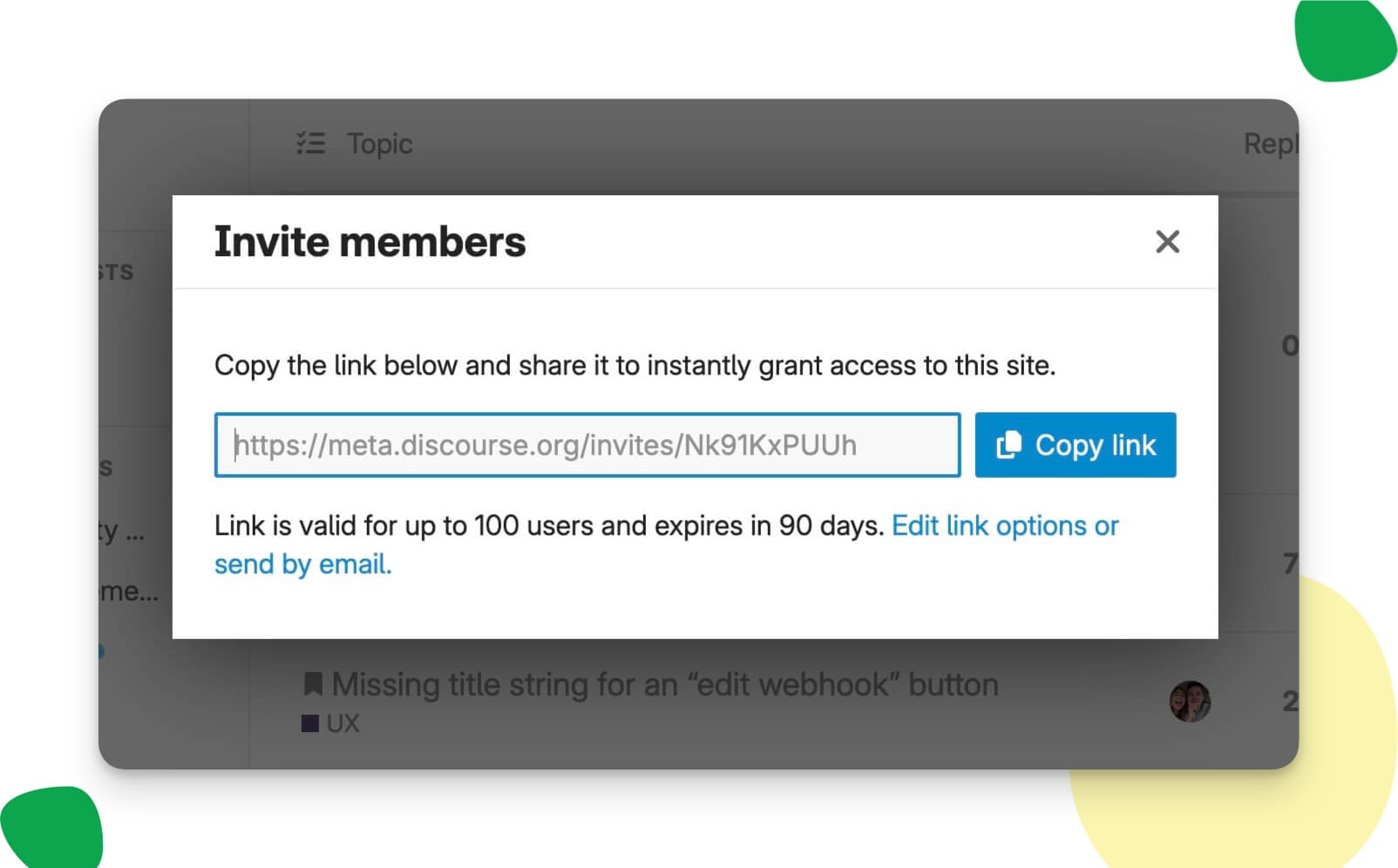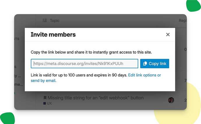 簡略化された招待リンクにより、新しいメンバーの招待がより速く簡単になりました。ほとんどのニーズをカバーする基本的なリンク招待が、ワンクリックで利用できるようになりました。追加のカスタマイズやメールオプションは必要に応じて引き続き利用可能なので、ニーズに最適なオプションを選択できます。