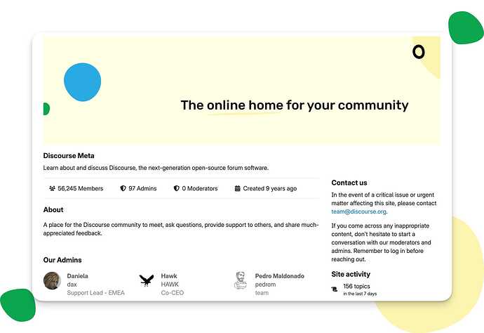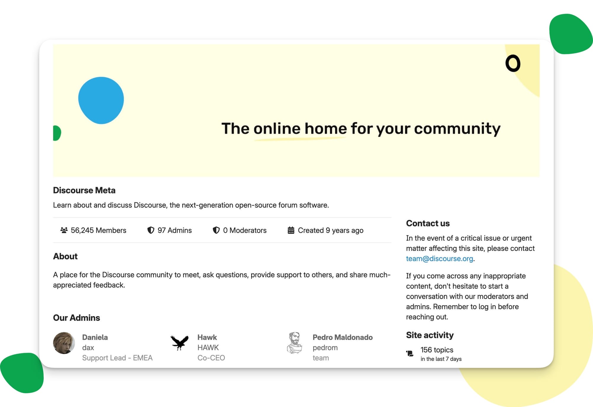 まだ Discourse を設定していませんか?無料トライアルを開始するか、自分でインストールするか、または他の人がどのようにプラットフォームを使っているかをご覧ください。